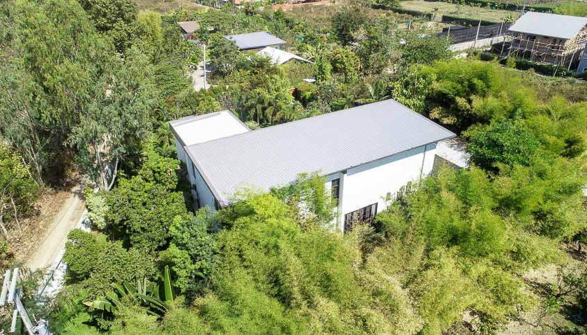 2 Bedrooms 1 bathrooms, Larger area than other 2 bedroom houses in village. Very private and secluded located some distance form other houses in village in our fruit orchard with view over duck pond. A Separate wash room and store is located in its own private garden and a private sala is also located in the house gardens. Ieal for those who want a place well away from others but still easy access to pool and all village amenities and grounds.